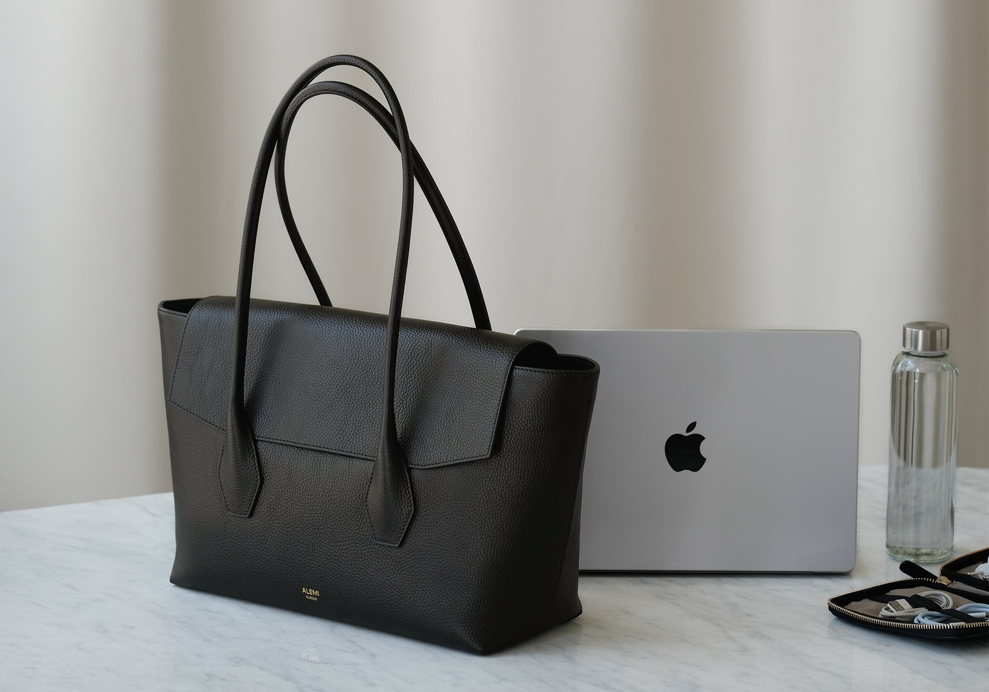 Elegant laptop bags designed for everyday functionality. Every ALEMI laptop bag features a dedicated, padded laptop compartment and multiple interior pockets to keep your essentials organized. Most models can be securely attached to a suitcase – making them the perfect companion for business trips and daily commutes. Made from scratch-, dirt- and water-resistant Italian leather, they offer durability without compromising on timeless design.